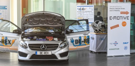 Im Rahmen des FVA E-Motive Expertenforum 2019 war DE-REX am 04. und 05. September 2019 in Schweinfurt vertreten. Die E-Motive 2019 zog rund 250 internationale Fachbesucher aus dem Automobilbereich an. DE-REX war mit einem eigenen Messestand samt Fahrzeugausstellung vor Ort. Des Weiteren wurden in einem Fachvortrag Projektergebnisse aus DE-REX vorgestellt.